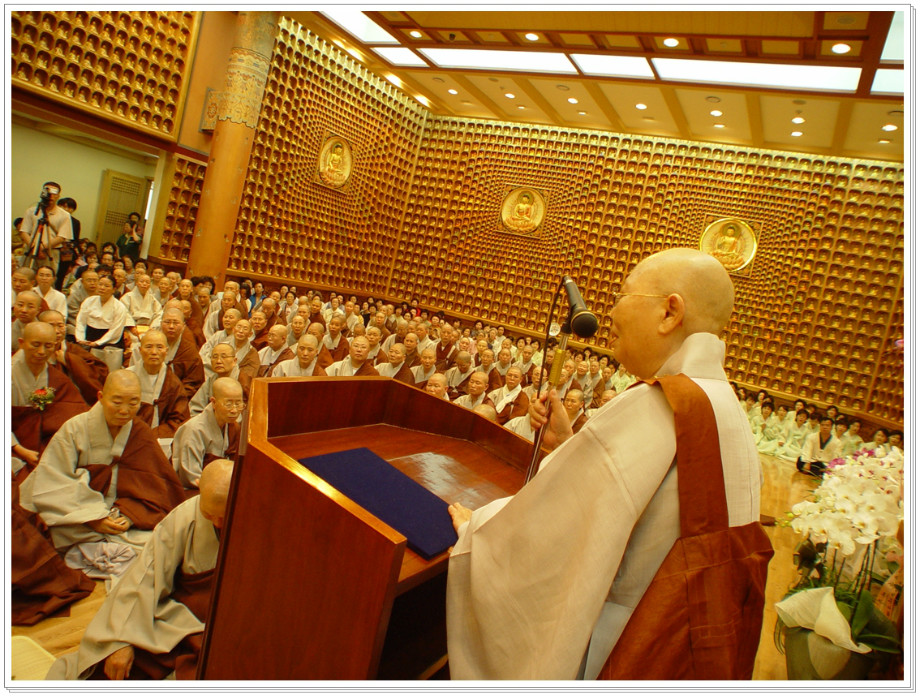" 중앙승가대학도 김포로 이전할 때 자금이 부족했는 데, 대행큰스님께서 흔쾌히 그 자리에서 비용을 주시고, 나중에도 주셨다.<사진은 1995년 중앙승가대발전기원부산대법회> 이런 말씀을 드리는 이유는 공덕의 실천이 없으면 대행선의 빛이 계속 갈 수 있느냐? 포교라는 관점에서 미래로 갈 수 있는 동력을 제자들이나 선원의 불자분들이 이제는 스스로 만들어내야 할 때가 되었다. 그 동력이 사라지지 않도록 하는 것이  연구의 중요한 촛점이 아닐가 생각한다."