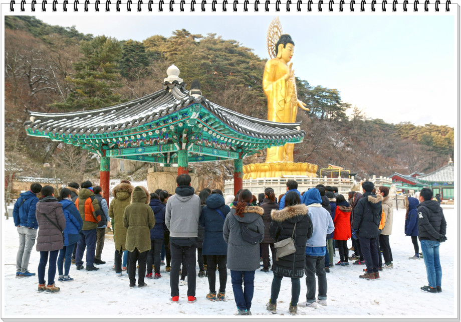 가이드로 부터 법주사에 대한 안내를 듣고 있습니다.