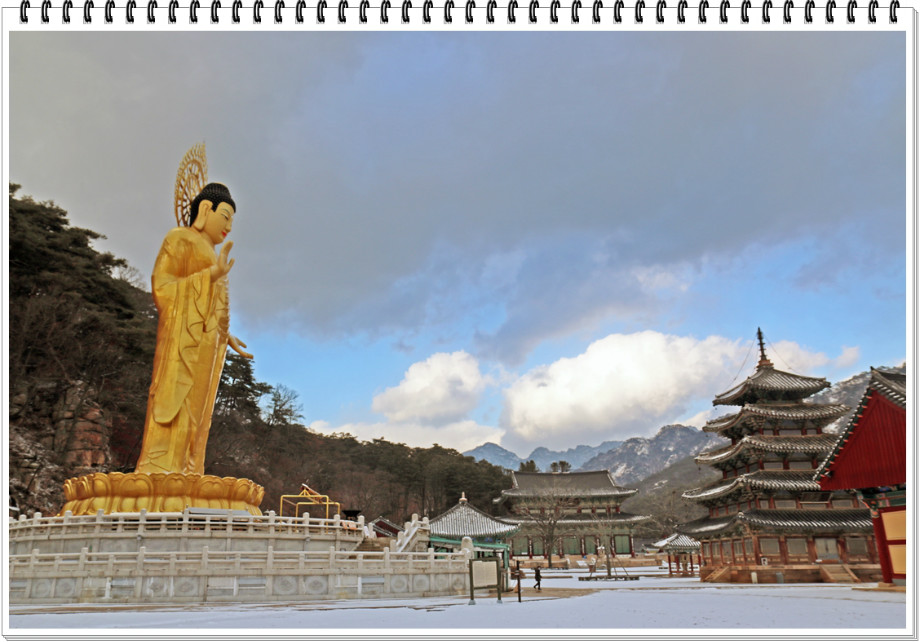 원래 법주사 청동대불 자리에는 용화보전이라는 대형 전각 안에 금박을 입힌 대형 청동대불 입상이 모셔져 있었으니, 신라 제36대 혜공왕 12년(776)에 진표율사가 7년간 조성한 것이었습니다.