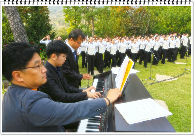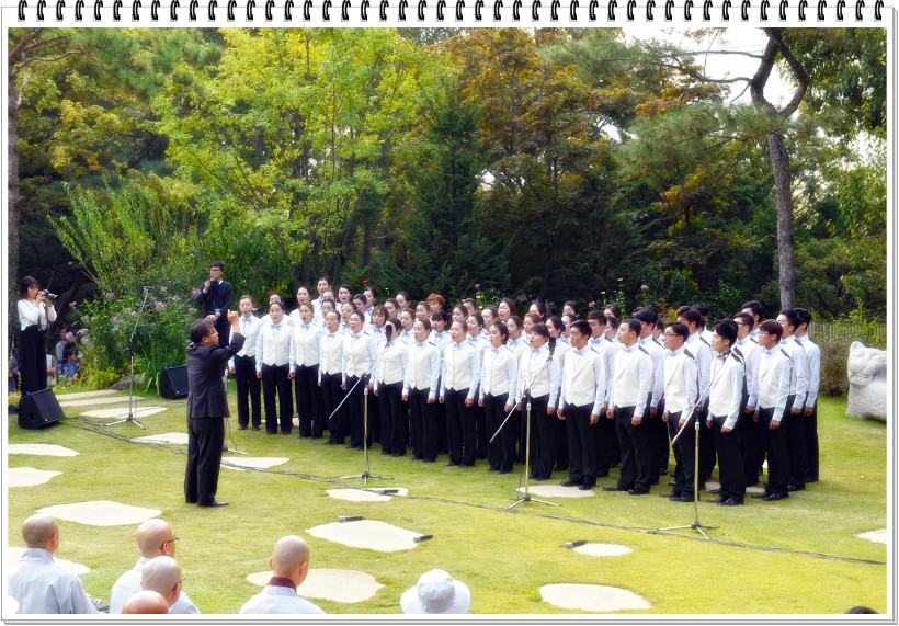 큰스님 부도탑 앞에 정렬한 본원청년합창단
