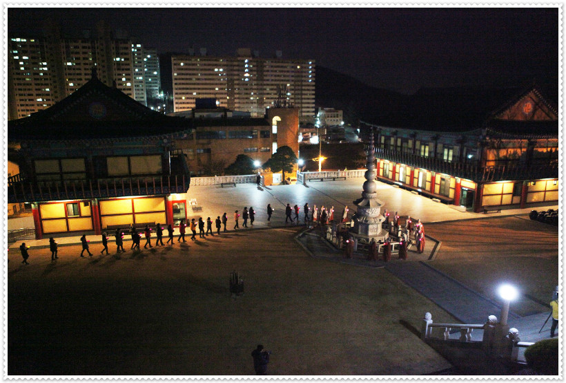 한마음은 제불의 둥근 원이 되고, 노닐던 사람들이 흩어지는 도량의 밤은 깊어 갑니다.