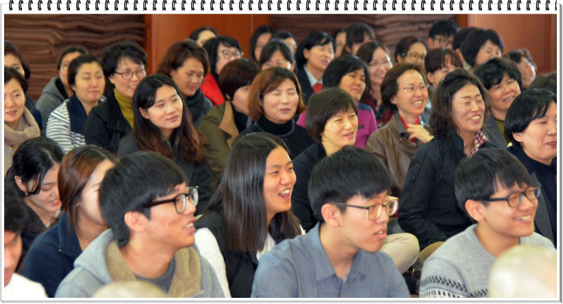 참석한 학부모님들이 법문 중에 옛날 예화를 듣고 활짝 웃으시는군요.