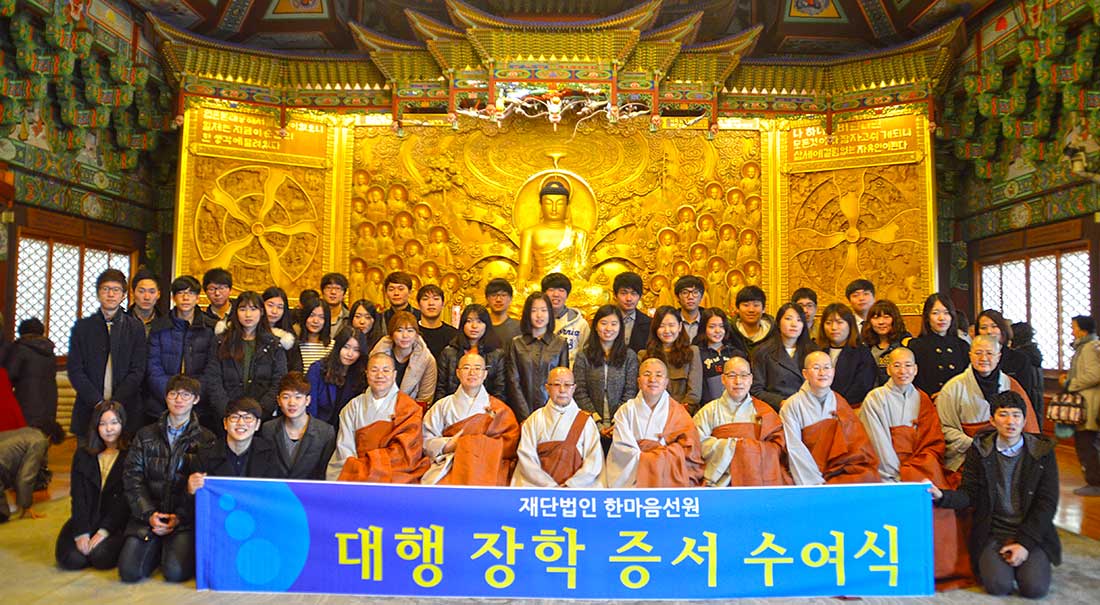 2014년 2월 16일 정기법회가 끝난 후 5층 법당에서 대행장학금 수여식이 있었습니다.