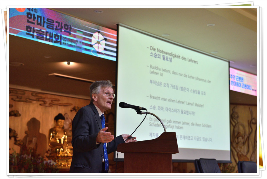 만프레드 후터(Manfred Hutter )교수 : "독일어로 질문해주셔서 너무 감사하다. 발제에서 깊게 들어가지 않은 부분이다. 종교의 토대라는 것은 내면을 관조하는 것이다. 불성을 바라보거나, 한마음을 관하는 것. 이 방식으로 생각할 때 기독교와 불교, 힌두교의 명상들이 공통점이 있다고 생각한다.