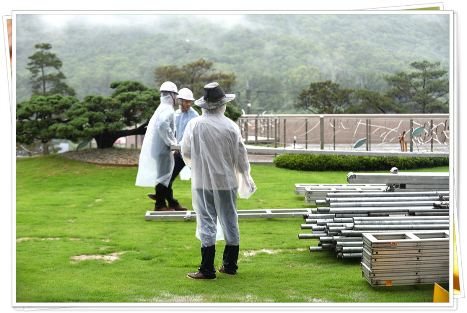 안개비 마다않고 기둥 세움은