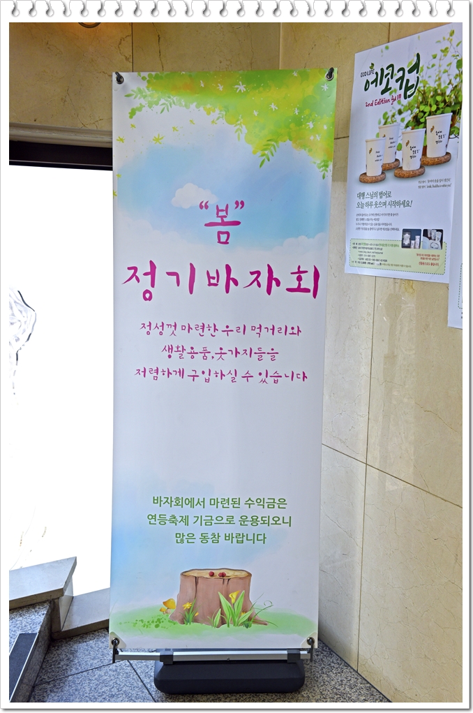 봄 정기바자회를 위하여 청주지원에서도 본원 입구에 자리를 마련했습니다.